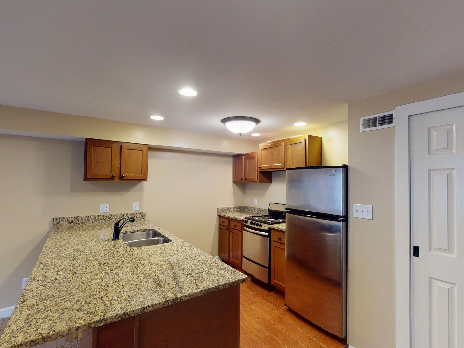 Located on Oakland and High, this beautifully updated and unique one bedroom flat features a fully equipped kitchen including dishwasher and micro hood and central air! On site laundry! Off street parking available!