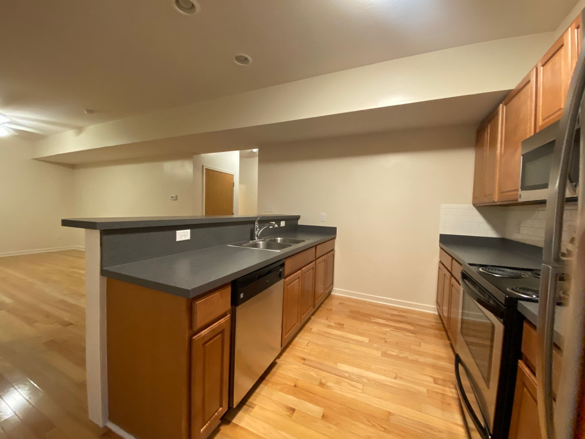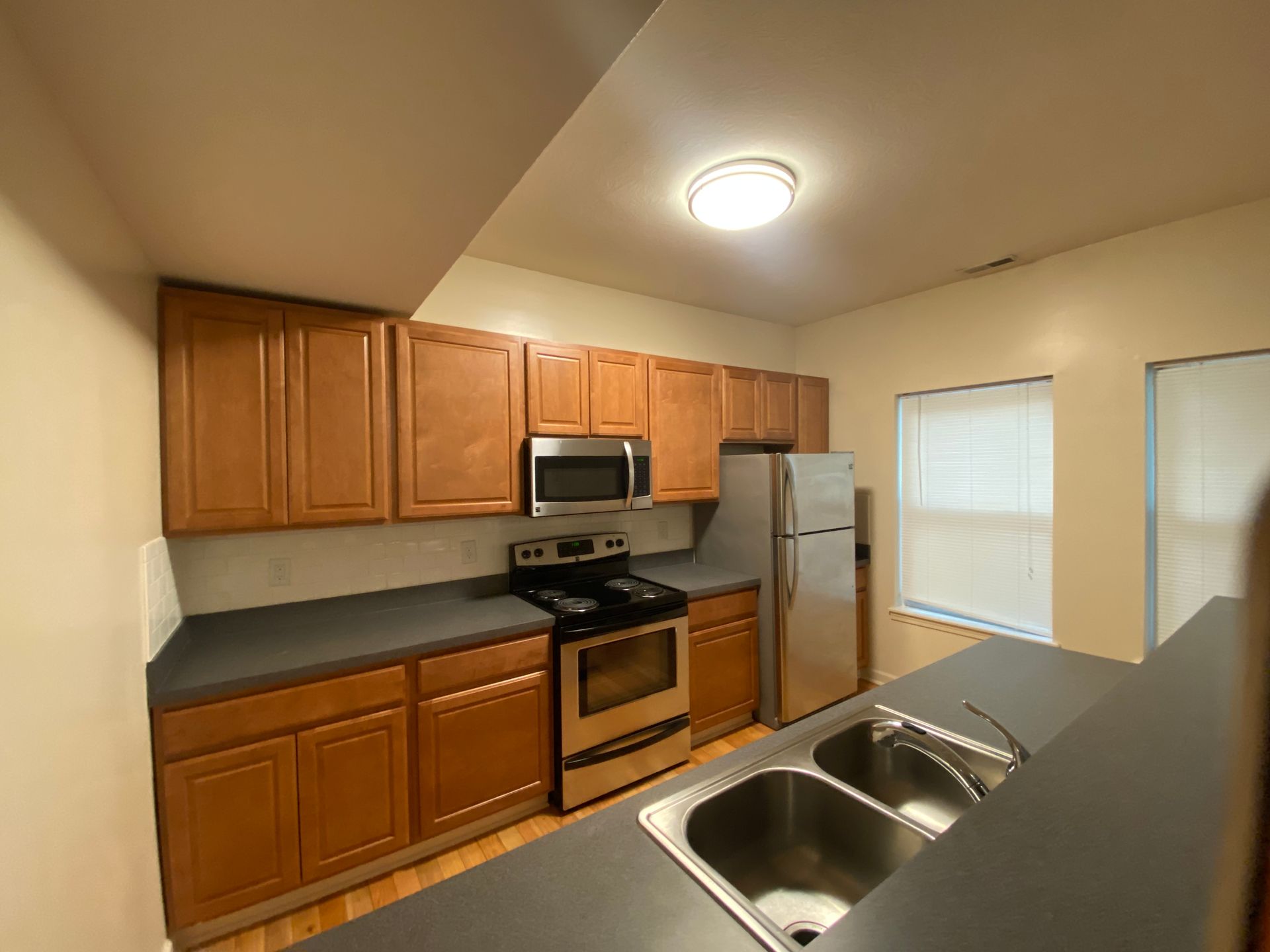 Fully renovated two bedroom, two bath townhouse with stainless steel appliances (range, refrigerator, dishwasher, microhood), in unit laundry, central air, and ceiling fans. Off Street parking available.