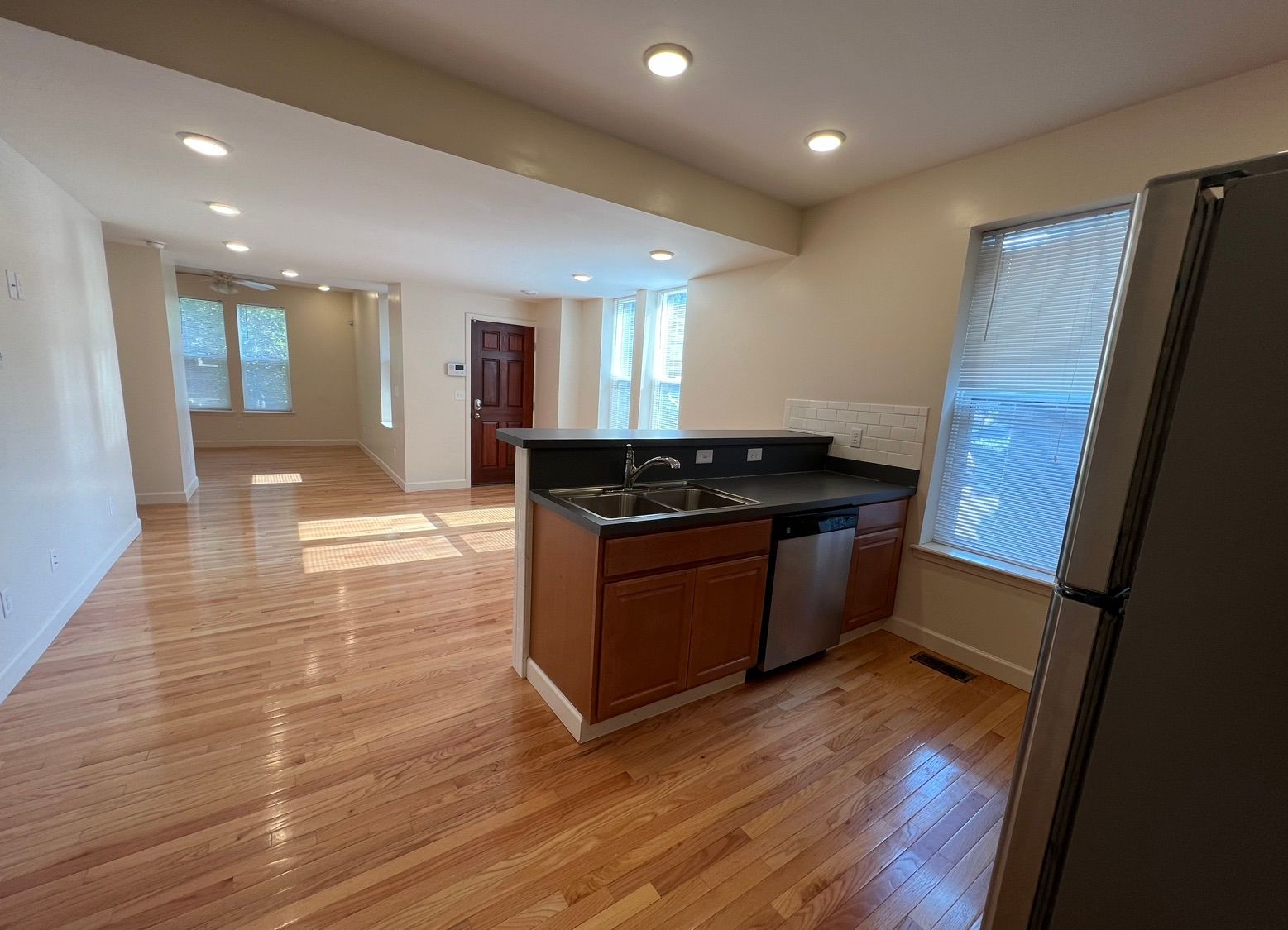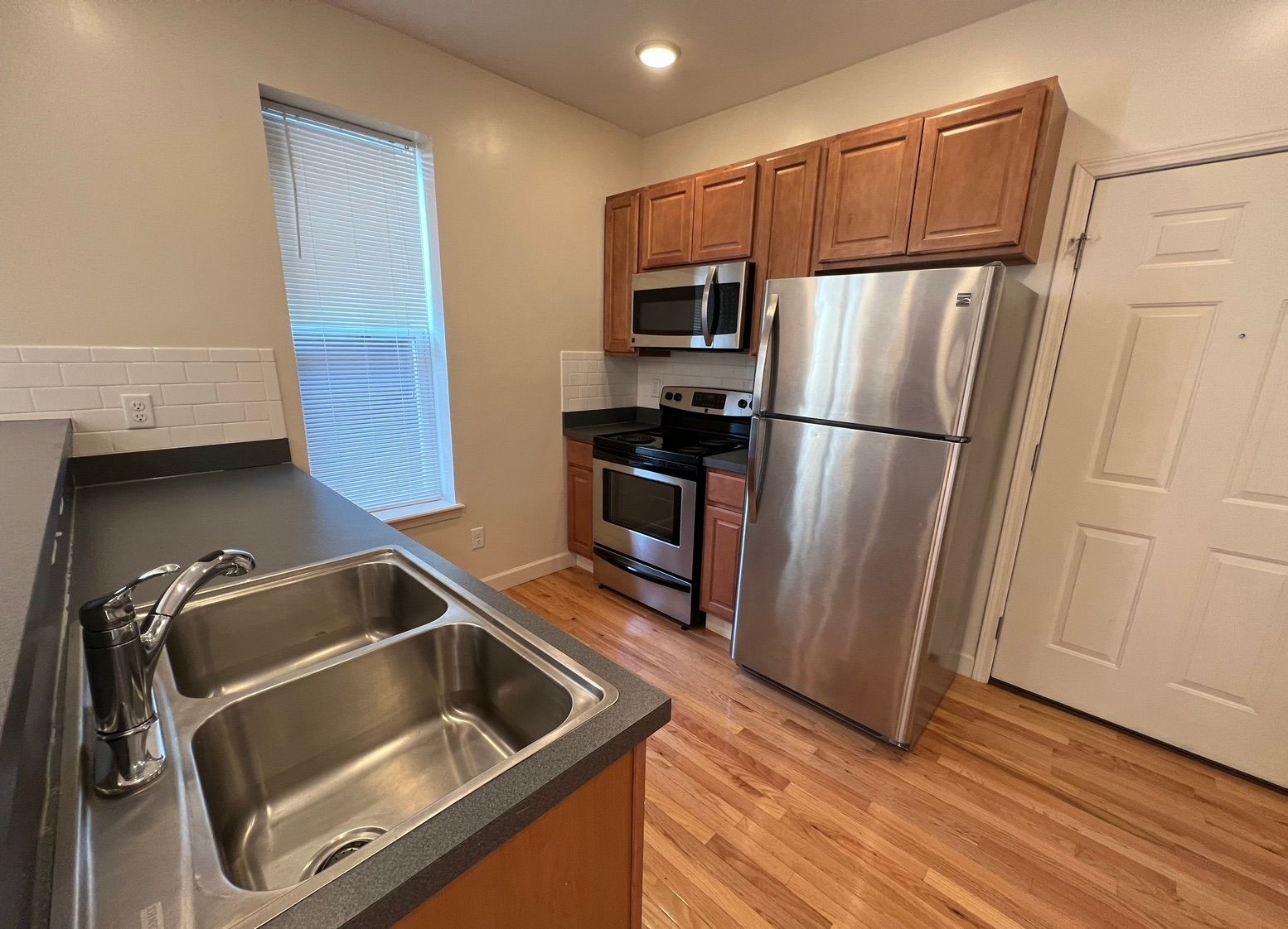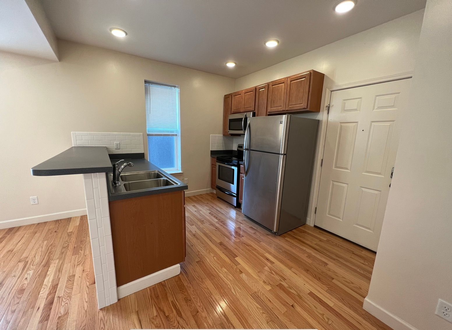 Fully updated unit with stainless steel appliances (range, refrigerator, dishwasher, microhood), washer/dryer, central air, porch, balcony, and ceiling fans. Off Street parking available.