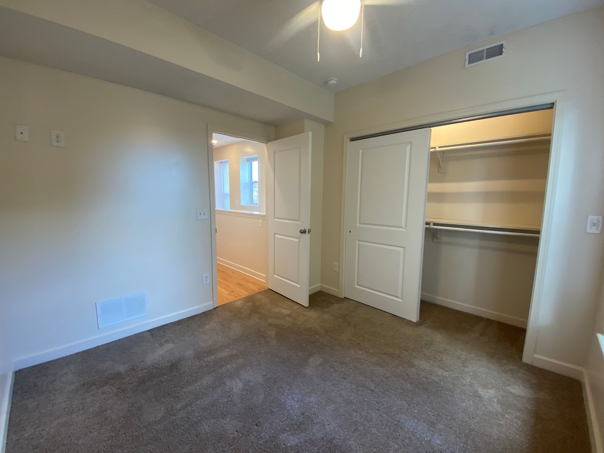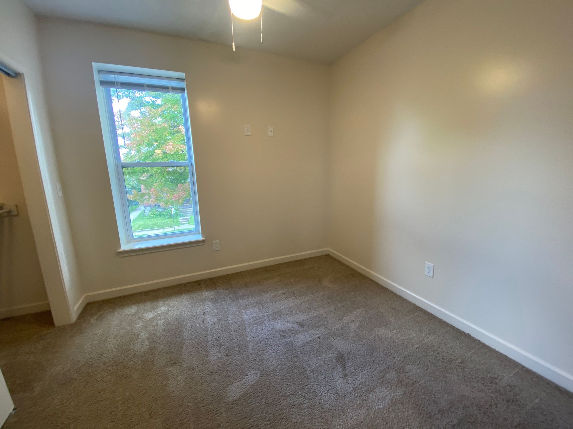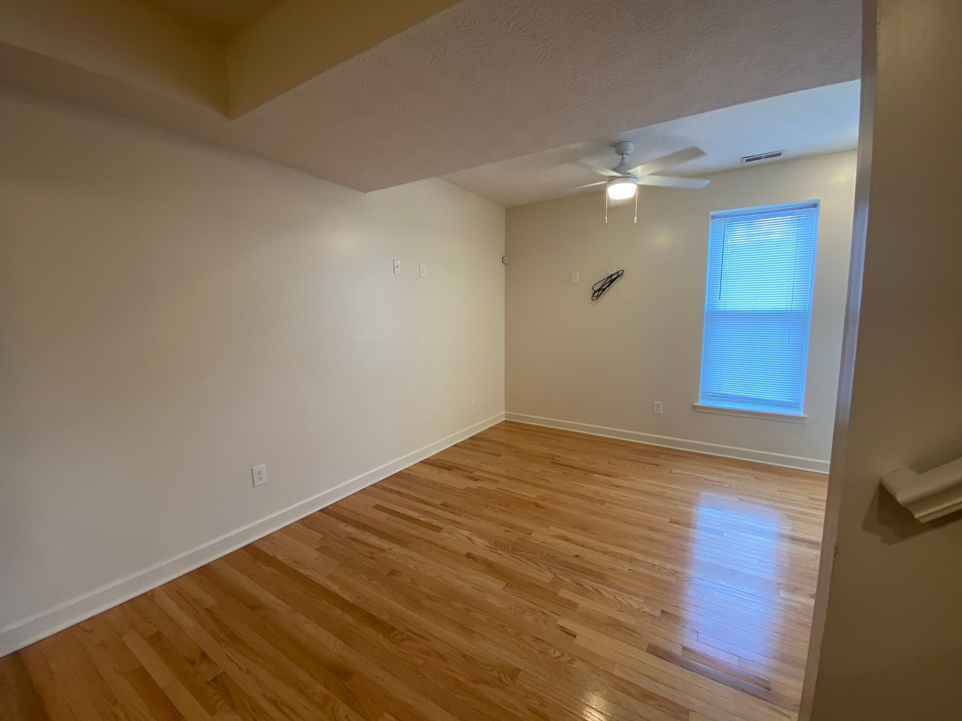 Remodeled four bedroom townhouse with stainless steel appliances (range, refrigerator, dishwasher, microhood), in unit laundry, central air, off street parking, and ceiling fans.